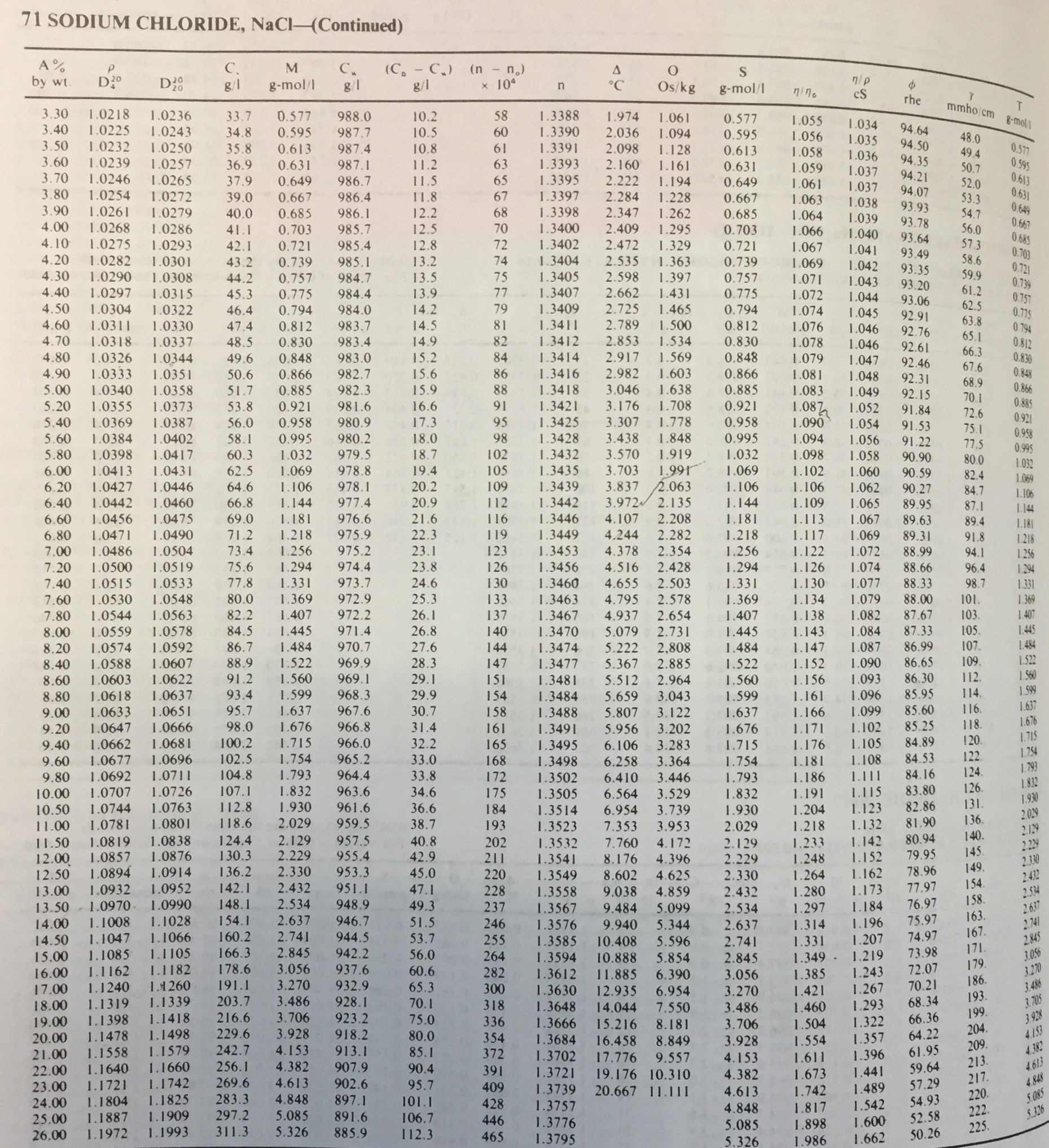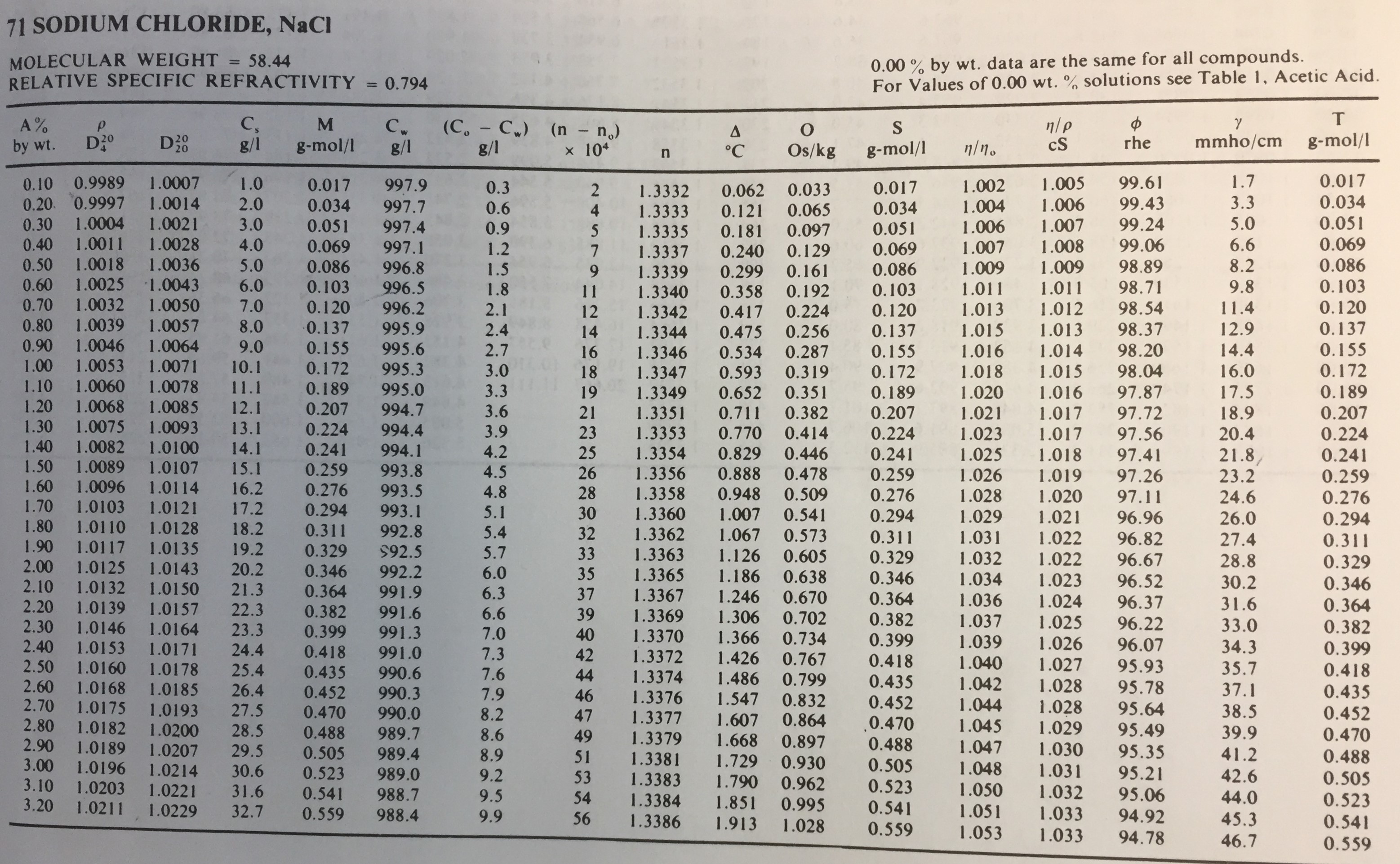 USEFUL TABLES:Solubility TableTable of IONsConversion FactorsSolubility ConstantsStardard Reduction PotentialsSalt percentage vs density page 1Salt percentage vs density page 2Metal/Alloy Density